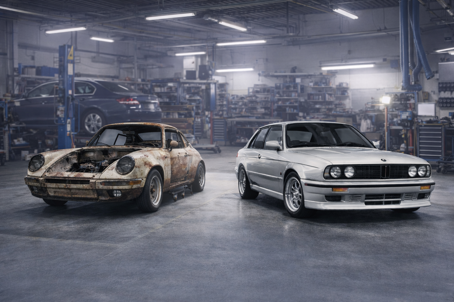 Ми працюємо з класичними та колекційними авто по всій Україні. Кожен проєкт супроводжується фотофіксацією, прозорим кошторисом і гарантією на виконані роботи.